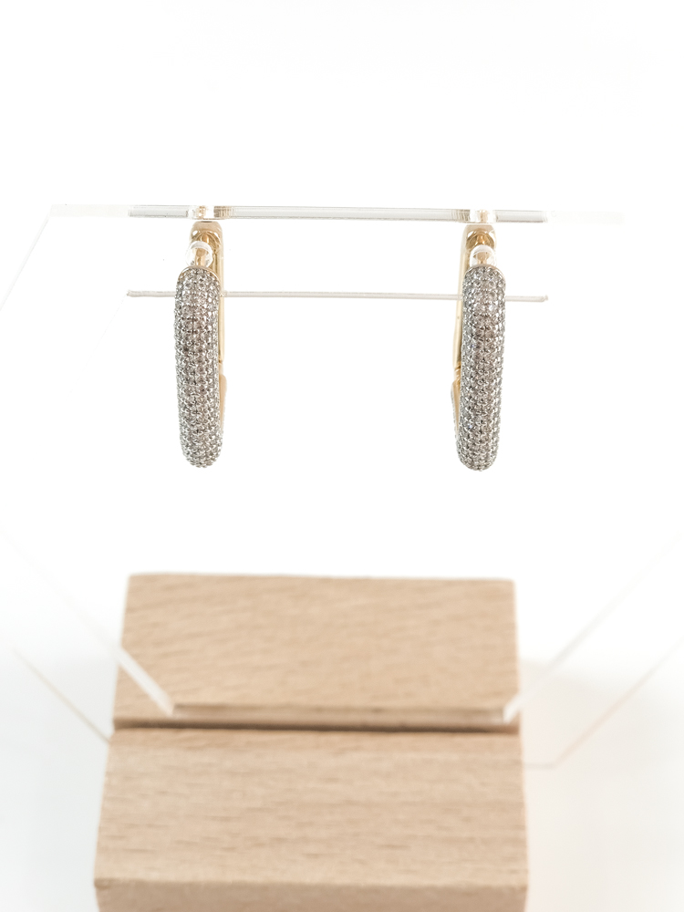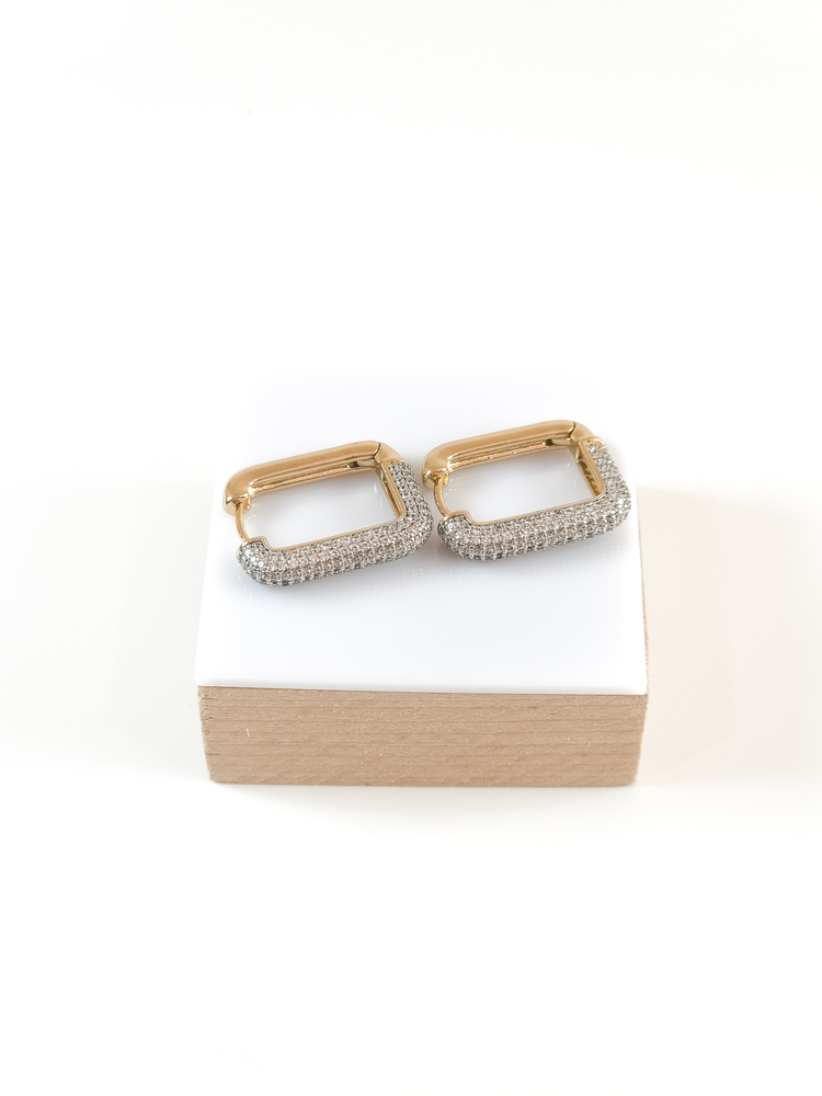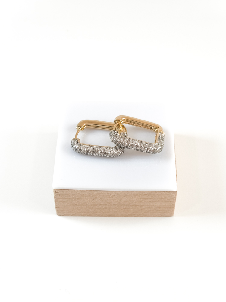 Gold Dikdörtgen Taş Kaplamalı Vip Küpe (22mm)