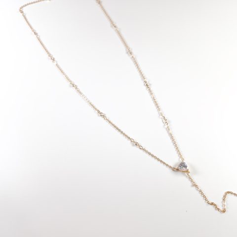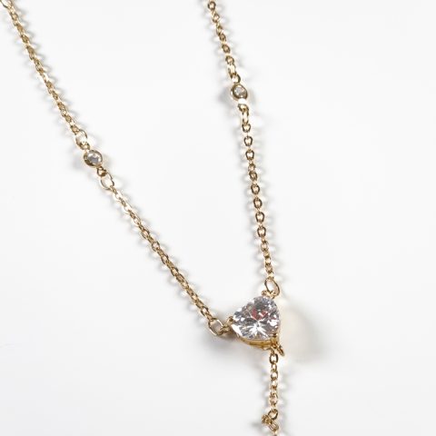 Gold Taş Detaylı Kalp Uçlu Vip Kolye (70cm)